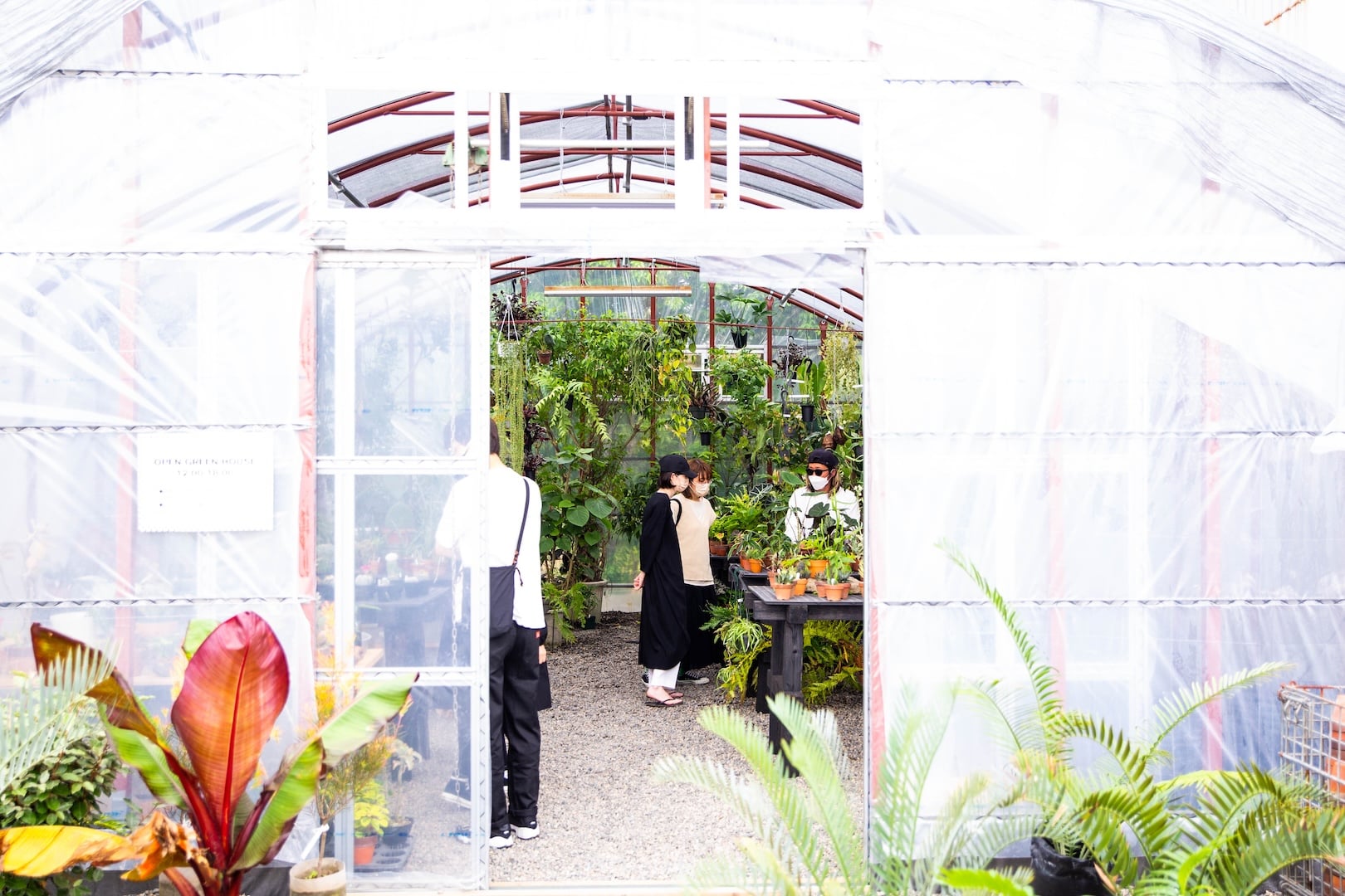 それからかたちを変えながら、今のAraheamは、壮大な畑の風景の中にある。 いくつもの温室と、元工場をリノベーションした建物。 タイミングが良ければ、ヘッドホンをつけて、音に乗りながら水やりをしている三男・剛三郎の姿を見ることもある。 父が営んできた植物の卸業を引き継ぎながら、三兄弟とスタッフで、今もかたちを変え続けている。